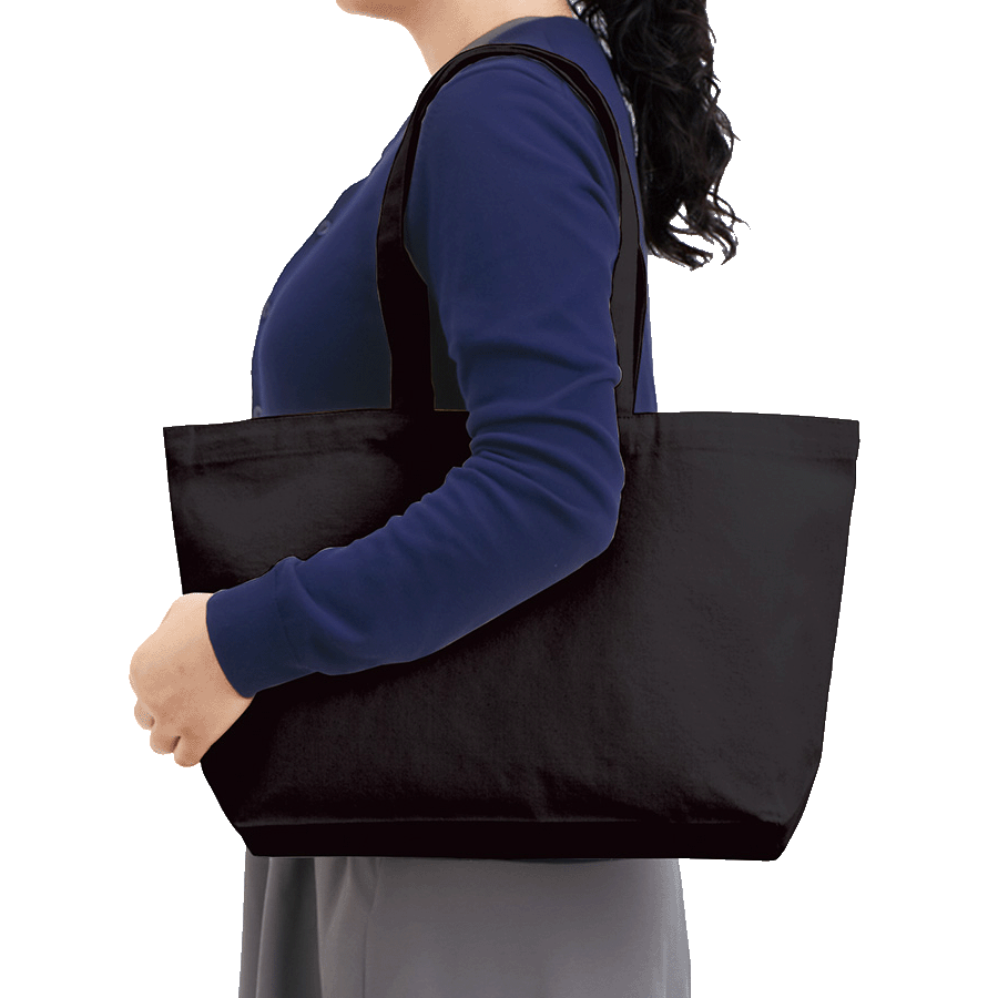 カラーバリエーションは006 ミッドナイトブルーと009 ナイトブラックの2色。いずれも落ち着いた深色で、企業ロゴ・ブランドタグライン・イラストが際立ち、ビジネスシーンからカジュアルまで性別を問わずマッチします。イベント物販グッズや展示会ノベルティ、スクールフェス記念品、書店やアパレル店舗のショップバッグ、さらには社内オンボーディングキットとしても活躍。高品質キャンバスながら原価を抑えられるため「数量は多く欲しいが予算は限られている」という課題を解決し、プロモーションROIを高めます。