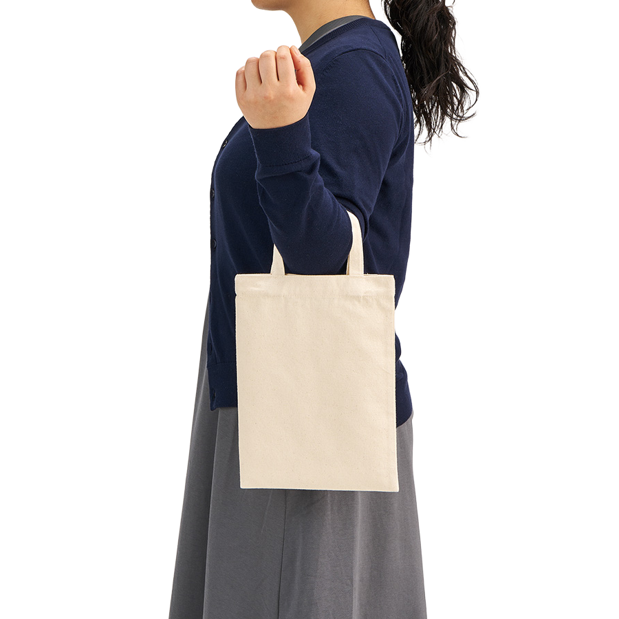 まとめると——安いのに、ちゃんと映える。 それがこのSサイズ。配る側はコストを抑えつつ、受け取る側は「日常でまた使える薄型トート」を手に入れられる。イベントが終わっても“使い道が続く”から、名入れの露出時間が長い=販促効率が高いのもポイントです。ライトキャンバスシリーズの中でも、Sは最も配りやすい定番サイズ。まずはロゴ1色から。必要に応じてフルカラーへ。小ロットから大部数まで、気軽にご相談ください。きっと“ちょうどいい”答えになります。