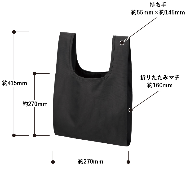 本体/約W270×H270(持ち手含む415)(mm) 持ち手/約W55×H145(mm) 折りたたみマチ/約160(mm)