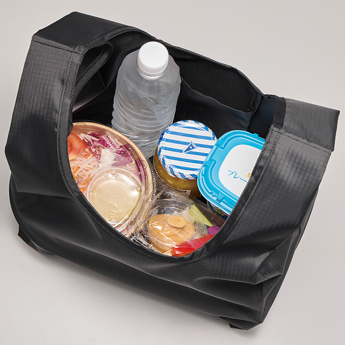 このバッグは、リップストップ生地を使って作られていて、とにかく丈夫なんです。正直、最初に手にしたとき「こんなに軽いのに、すごくしっかりしてる!」と驚きました。リップストップはアウトドア用のウェアやギアにも使われる素材で、破れにくくて長持ち。だから普段の買い物用としてはもちろん、キャンプやピクニックでも心強い味方になります。 形はマルシェ型で、口が大きく開いて物が入れやすいのが嬉しいところ。Mサイズは容量約8Lで、お弁当やちょっとした食材を入れるのにちょうどいいんです。実際に私もランチと飲み物を入れて持ち歩いたことがありますが、サイズ感が絶妙でゴチャつかないのが便利でした。 軽くて折りたためるのに、しっかり荷物を支えてくれる。そんな「頼れるバッグ」を普段から使っておけば、いざという時も安心ですよ。