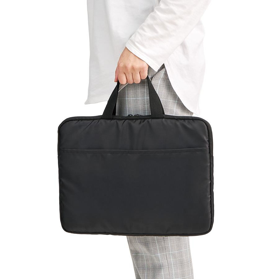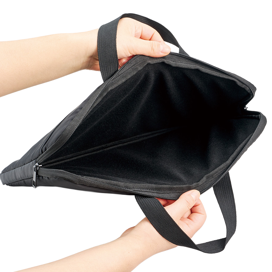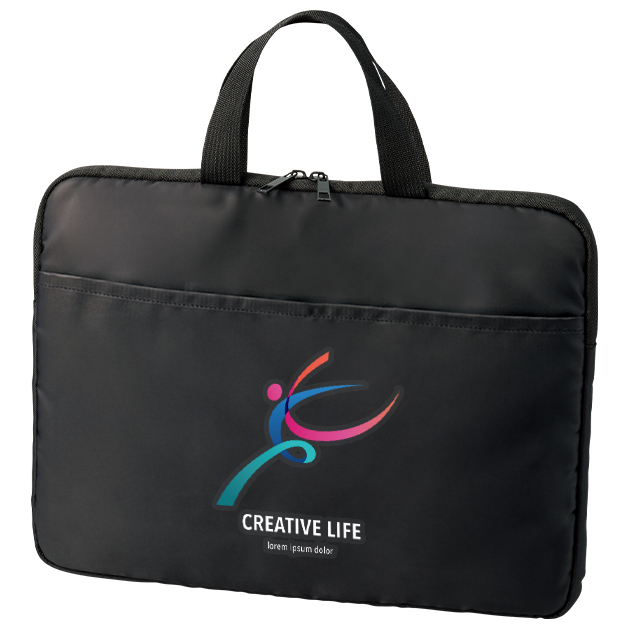 オリジナルPCバッグ作成に最適!13.3インチ対応・ハンドル付きモデル 企業のロゴやイベント名をプリントしやすい、フラットでシンプルな形状が魅力。 定番の13.3インチサイズに対応し、展示会の記念品や、社員への支給用グッズとしても人気急上昇中のアイテムです。実用性が高く、長く愛用してもらえるノベルティをお探しの方におすすめです。