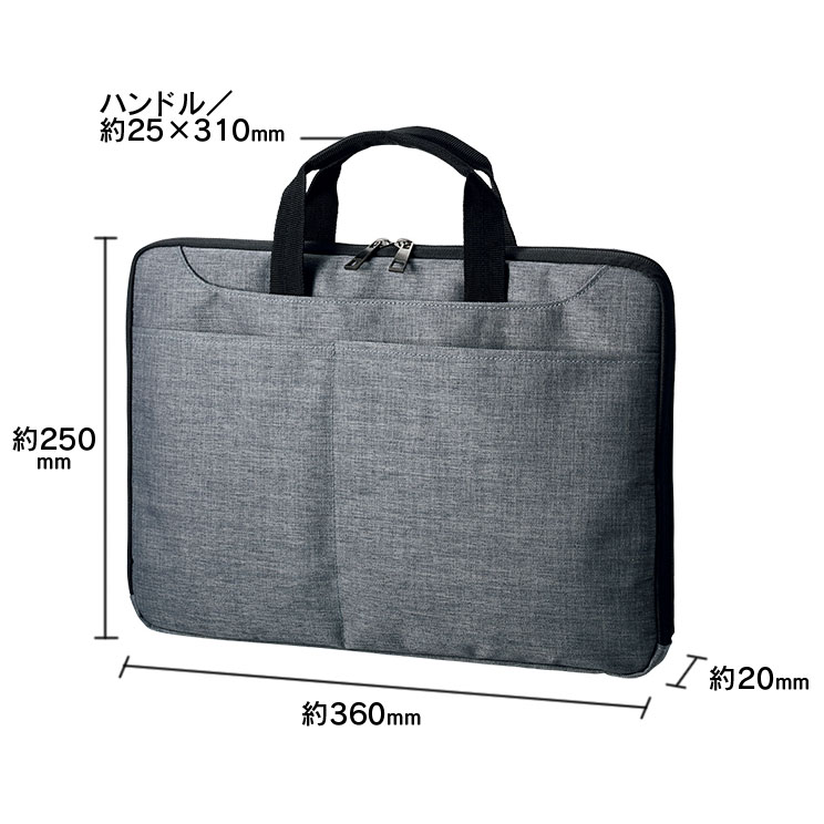バッグ本体/約360×250×20(mm) ハンドル/約25×310(mm) 加工ありの場合は袋入れでの納品になります。