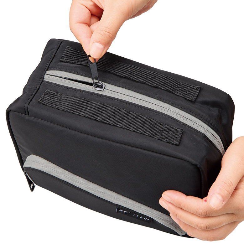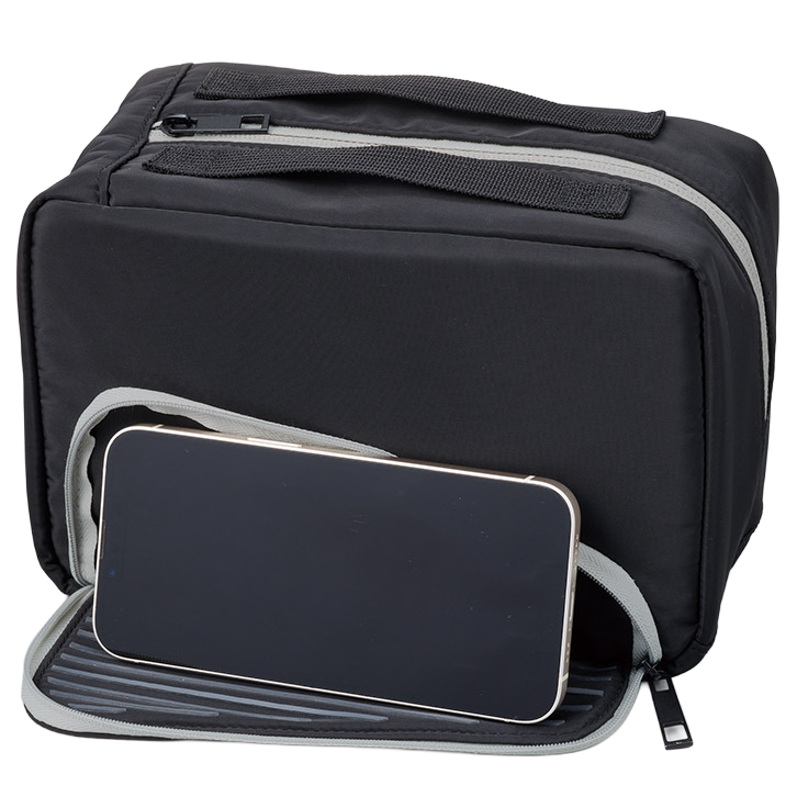 お弁当も入る!持ち手付き多機能マルチポーチ ガジェットポーチとしての機能に加え、ランチバッグとしても使える大容量・マチ付き設計です。 持ち運びに便利なハンドル(持ち手)が付いているため、ミニバッグとして単独での使用も可能。通勤・通学のサブバッグとして、または化粧ポーチやトラベルポーチとして、幅広いシーンで活躍します。
