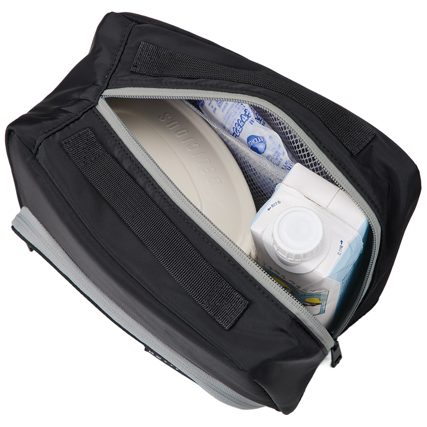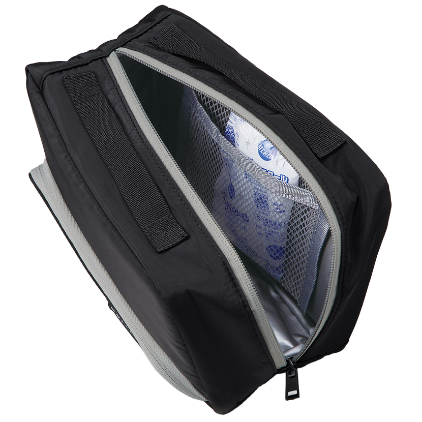 もちろん、ポーチとしての基本スペックも侮れない。ペラペラの生地じゃありません。ポリエステルにEVA、ポリエチレンなどを組み合わせた「4層構造」になっている点は、熱力学的観点から見ても保冷効果の持続性に大きく寄与しています。内側のメッシュポケットに保冷剤を放り込めば、夏場の過酷な環境下でもお弁当を守り抜く。サイズは幅210mm×高さ135mmと、標準的なランチボックスと500mlペットボトル(横置き)がすっぽり収まる、計算され尽くした約2Lの容量設計です。