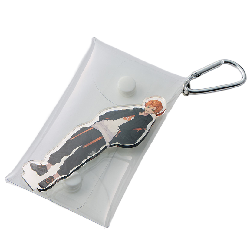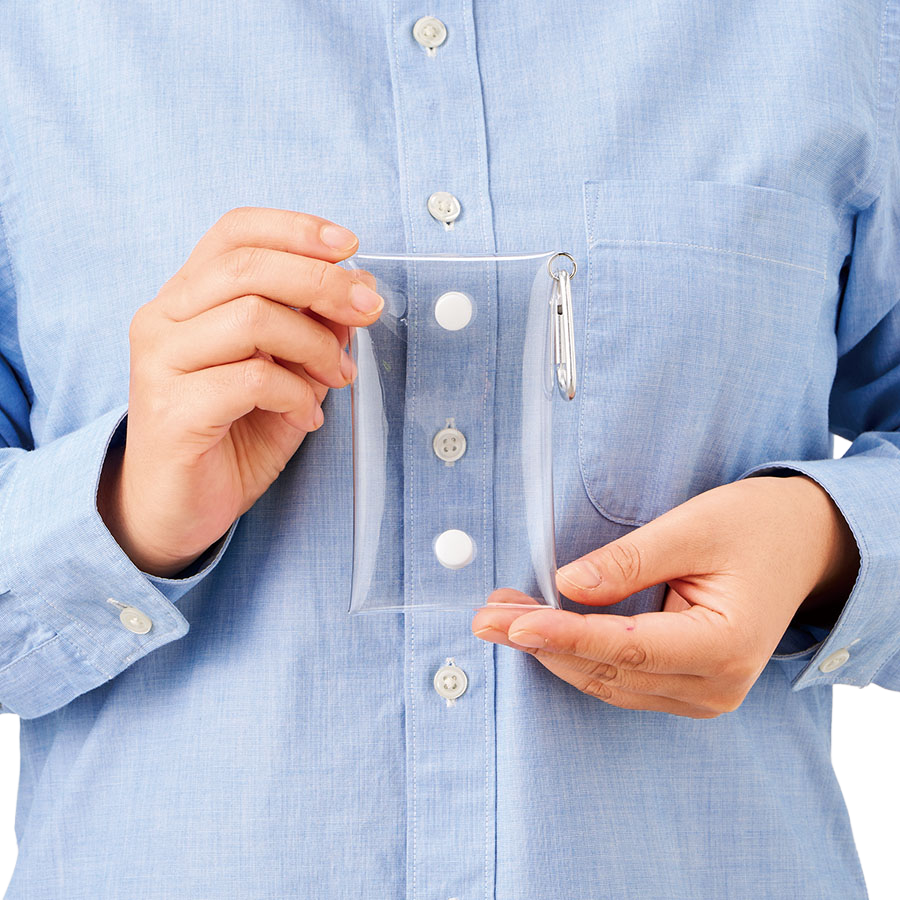 このマルチケースの最大の魅力は、推し活グッズの持ち運びに特化した絶妙なサイズ設計にあります。トレーディングカード(約W63×H88mm)やアクリルスタンド(約W65×H100~105mm)がすっぽり収まる寸法で、大切なグッズを傷や汚れから守りながら、カラビナ付きでバッグやリュックに手軽に装着できる機能性を備えています。透明なPVC素材を採用しているため、中身が一目で確認でき、推しキャラクターやアーティストのビジュアルをそのまま楽しめるのも嬉しいポイントです。