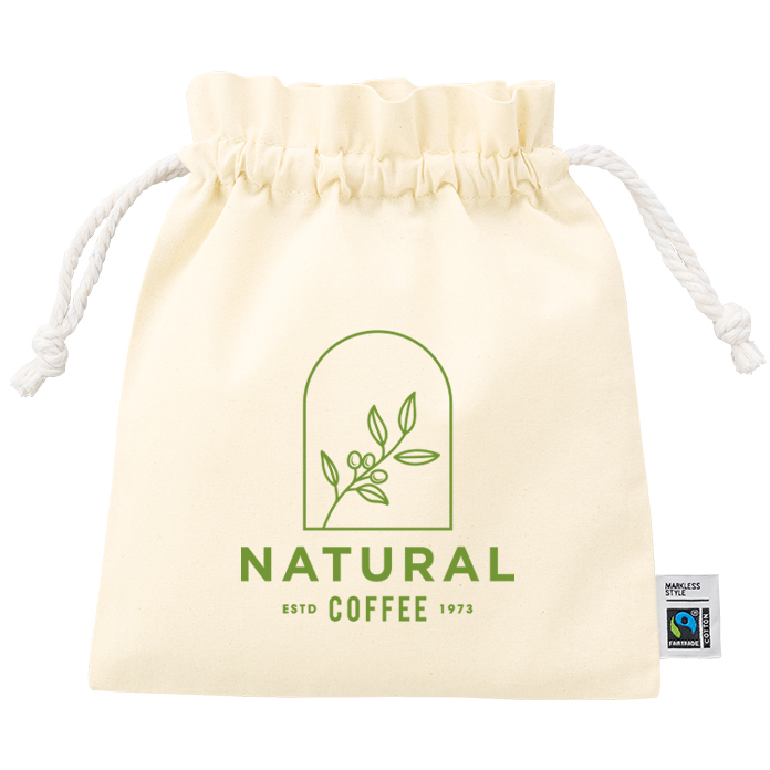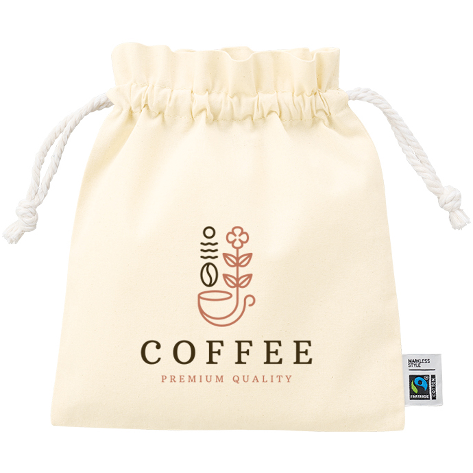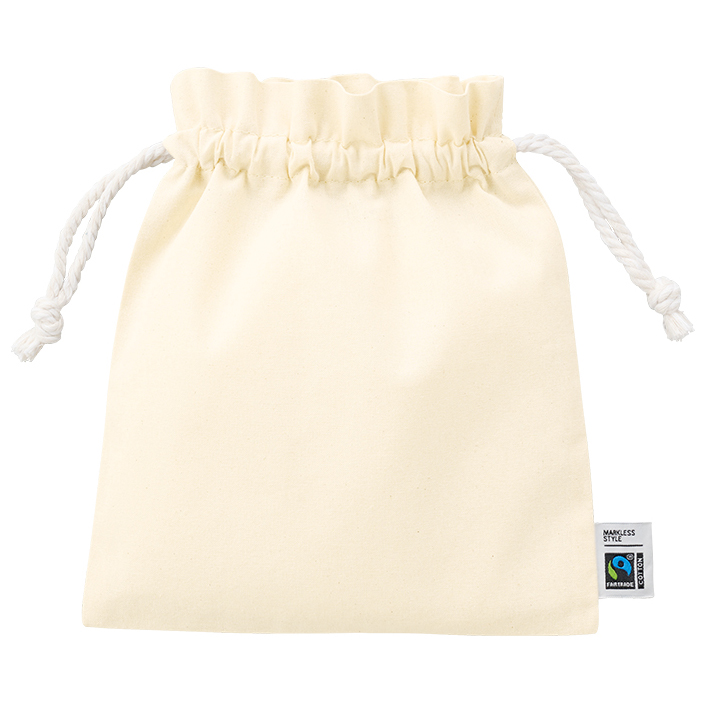 フェアトレードコットンフリル巾着バッグ(S)ナチュラルで激安いオリジナルエコバッグを作成 オリジナルトートバッグの“もうひとつ”に、ぴったりの一枚 |